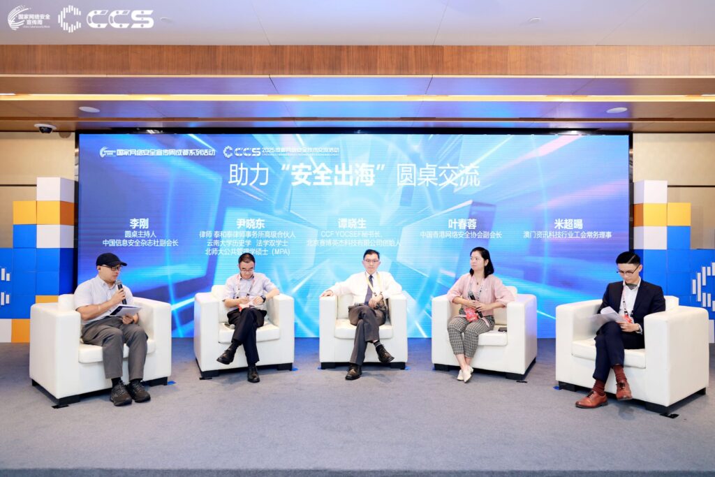 此外,米超暘先生亦參與了由《中國信息安全》雜誌社副社長李剛先生主持的圓桌交流環節。該環節聚焦「安全出海」主題,與談嘉賓還包括葉春蓉女士、泰和泰律師事務所高級合夥人尹曉東律師,以及CCF YOCSEF秘書長、北京賽博科技有限公司創始人譚曉生先生。嘉賓們就港澳在數據合規與網安治理的實踐經驗、區域協同防護及風險應對策略等議題展開深入交流。與會者一致認為,港澳在制度靈活性與國際接軌方面具備顯著優勢,可為內地企業「走出去」提供寶貴的合規參考模型。