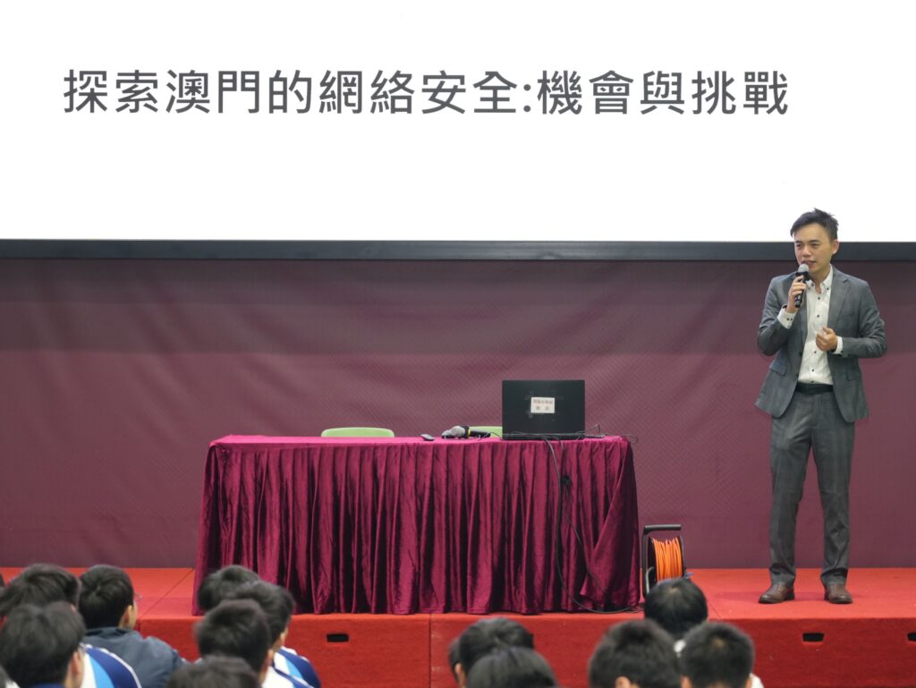 在講座中,林家健會長強調,資訊科技產業是支撐澳門「1+4」發展戰略的重要基礎,而網絡安全防護則是保護該資訊基礎的關鍵一環。會長引述了數個典型的網絡安全事故案例,說明資訊安全漏洞的潛在風險及其可能帶來的嚴重後果,讓同學們深刻明白防線的重要性。